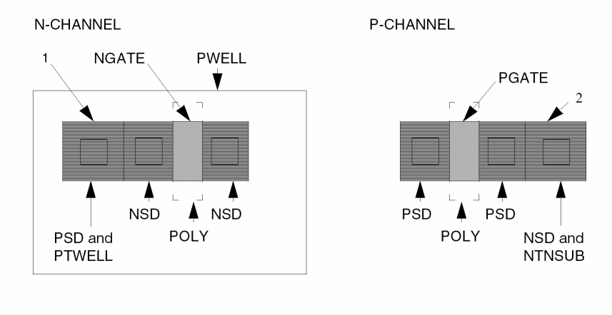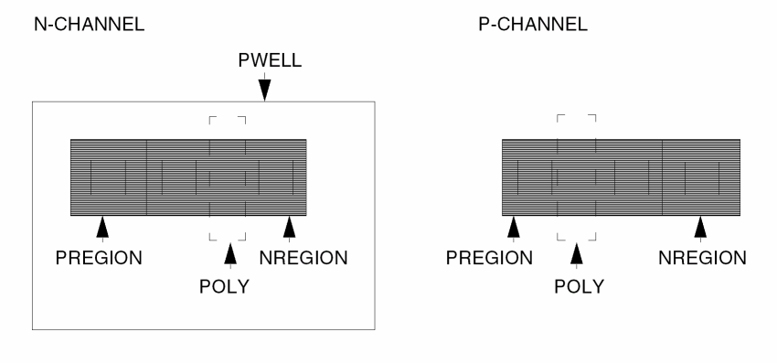 AND poly pregion pgate ; P-Channel devices