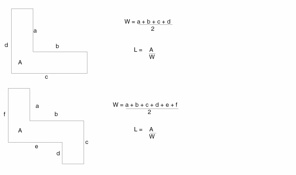 L = the length of the gate which is equal to the total area of the gate divided by the initial width of the gate (e.g. Area/W{init}) -