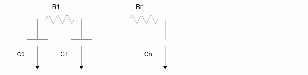 This format lets you model the pin characteristics by a higher order equivalent R/C ladder circuit than is represented by a single capacitor. The order of the equivalent circuit is increased from the first order (represented by C0) by attaching R/C pairs. The value of each capacitance is determined by a numerical value and a unit specifier such as PF. Use the generalized pin capacitance only if the pin type is I, O, or B. With other pin types, pinCap is dropped. In this case, you should use a number (for example, 0) as a place holder.