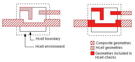 Composite geometries that fall within the environment area are checked as part of the Hcell, as shown: