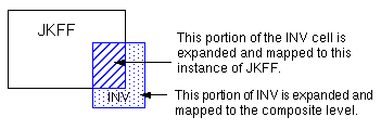 Dracula expands cells that do not qualify as Hcells and brings them up to the composite level. If the cells are nested in an Hcell, Dracula brings them up to the Hcell level and maps them to that instance of the Hcell.