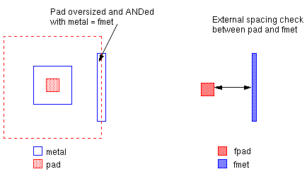Pad-to-metal checks normally use large spacing values and involve many geometries. To avoid affecting the environment value, use the FLATTEN function on the pad and metal layers. To reduce the amount of data that you must process, which in turn reduces the processing time, use logical operations.