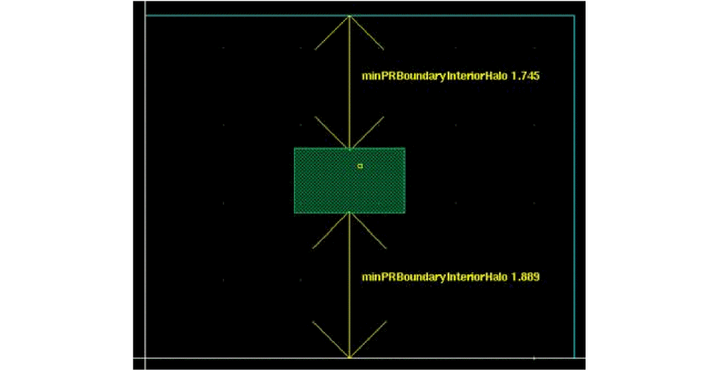 The minPRBoundaryInteriorHalo constraint defines a set of legal spacing values between a shape on a layer and the surrounding PR boundary. DRD uses the following parameters of this constraint to support discrete spacing rules for FinFETs: