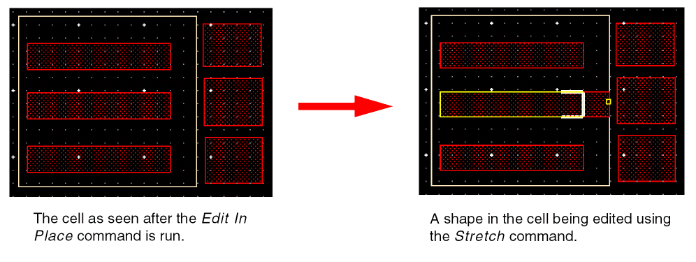 Next, select the instance and choose Edit – Hierarchy – Edit In Place and edit a shape inside the cell.