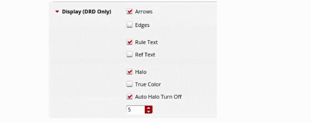The various Display options available on the Interactive tab work with DRD Enforce and DRD Notify modes: