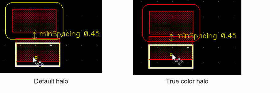 True Color halos for each layer are drawn in the color of that layer. This makes it easier to differentiate between halos on different layers.