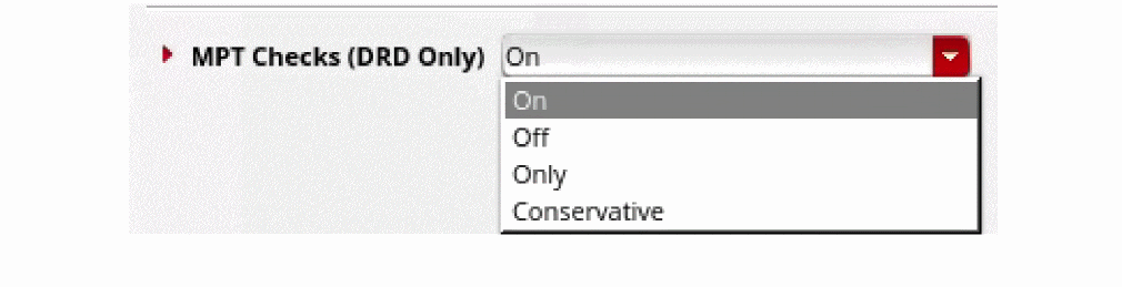 The MPT Checks drop-down menu lets you perform the checks for color constraints in different DRD modes. This drop-down list provides the following four options: