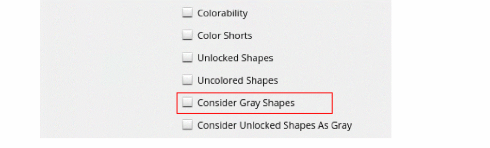 - Consider Unlocked Shapes as Gray: Considers unlocked shapes as gray.