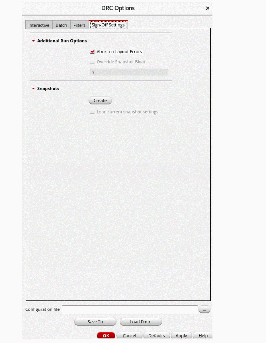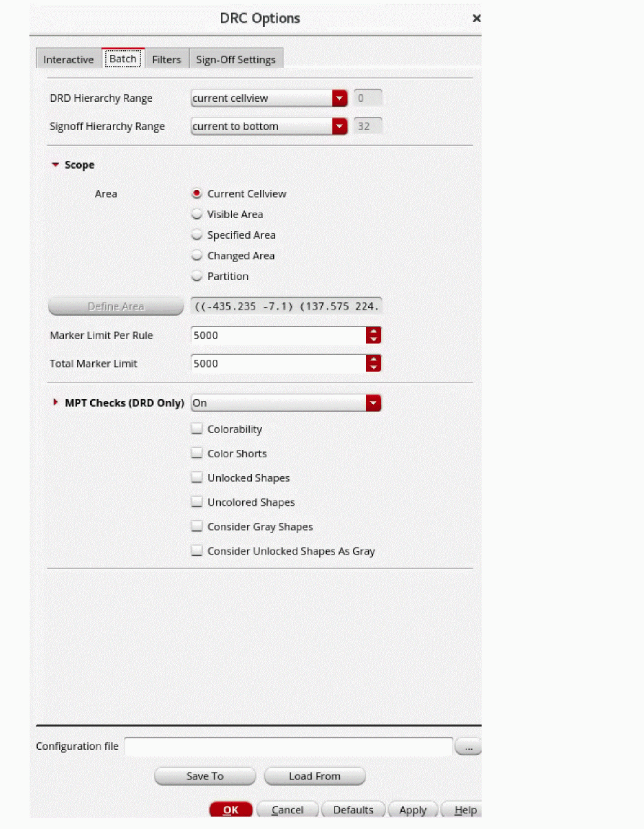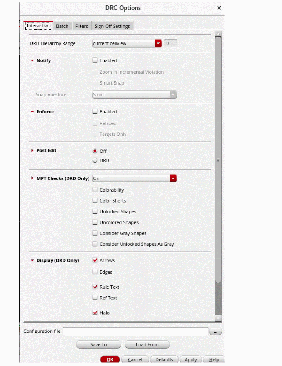 To load settings from the specified configuration file into the DRC Options form, click the Load From button.