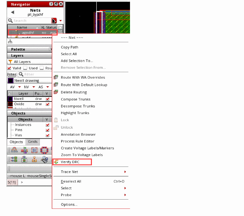 To run Verify DRC on a net, do the following: