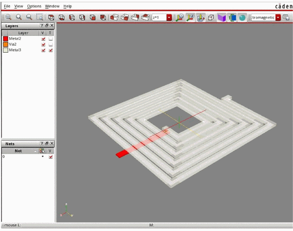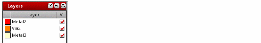 While reviewing a mesh, use the check box for a layer to control the visibility of that layer. This lets you to focus on specific layers and the shapes placed on them. To show or hide all layers of a library, select or clear the check box corresponding to the library name. You can also control the transparency of each layer in the Layers assistant of the Virtuoso 3D viewer by selecting the check boxes.