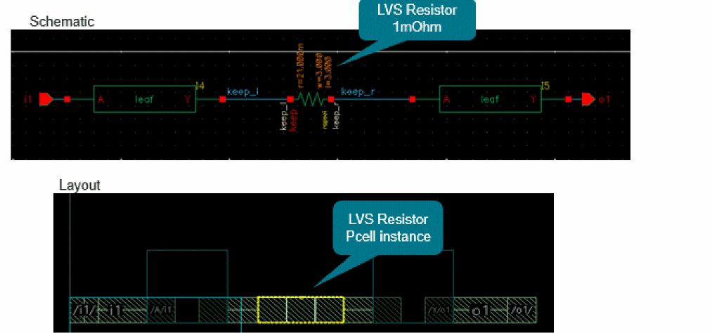 Scenario 1: The LVS resistor is added as an instance in both the schematic and the layout