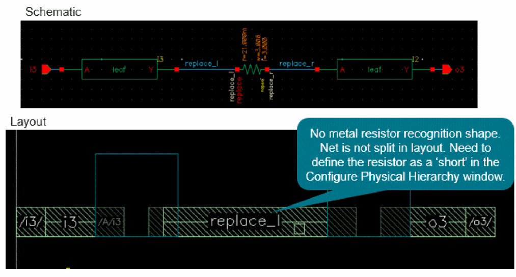 In this scenario, you can ignore the resistor by specifying it as a short on the Instances tab of the Configure Physical Hierarchy window.