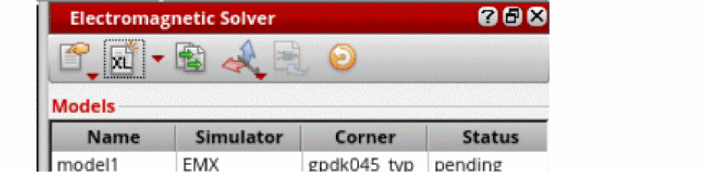 You can specify the default simulators to be used for package and IC designs by using thevem.ic defaultSimulatorandvem.package defaultSimulatorenvironment variables, respectively. - The Status column of a model shows its simulation run status. By default, it is set as Pending.