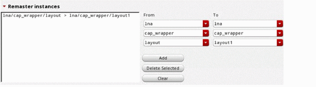 - Choose the library, cell, and view name of the new master layout from the drop-down lists given below To.