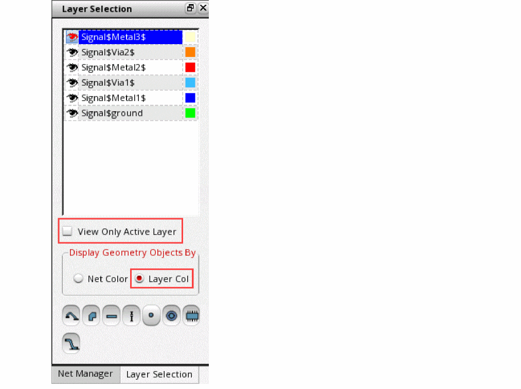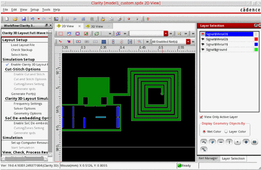 Clarityis selected in the Simulator column. - (Optional) Review the EM layout to verify the geometries being sent to the solver for simulation.