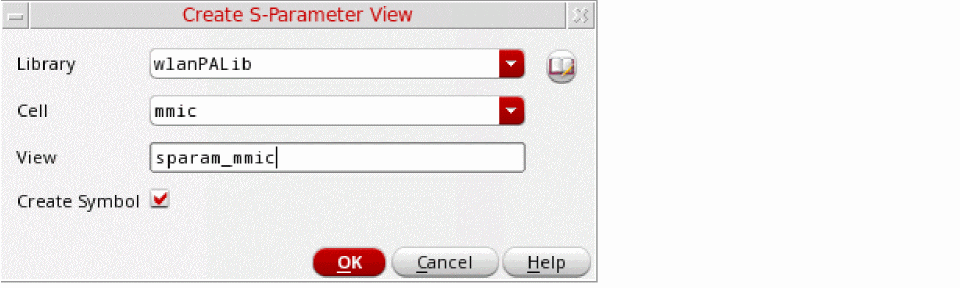 A new S-parameter view and a symbol view is saved in the specified library and cell.
