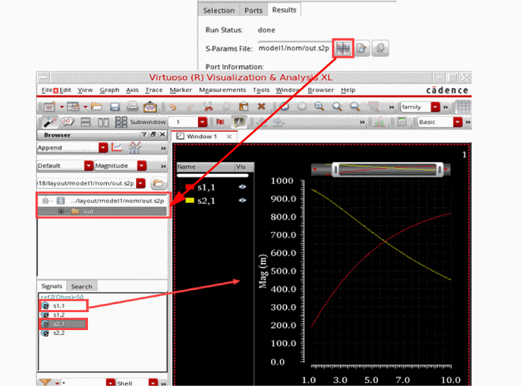 Plotting S-Parameter Data in Virtuoso Visualization and Analysis XL