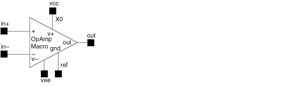There are 23 parameters you can use to describe the DC, AC, and transient behavior of the OpAmp in the macromodel.