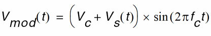 This signal is the baseband signal, Vs(t), which modulates the carrier. The depth of modulation required is 100 percent, so it is necessary for the carrier amplitude and the effective baseband amplitude to be equal.