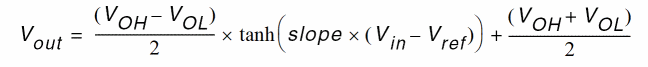 slope determines the slope of the transfer region. The single-sided switching region for Vout within approximately 99.5 percent of the limits is Vin = 0.003.