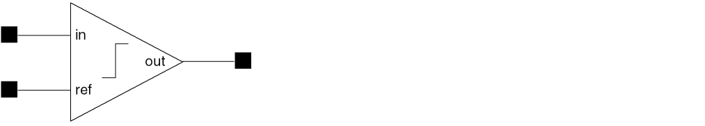 This comparator is not the same device created by the comparator macromodel product.The comparator macromodel product can create a new device each time you use it. The symbol and accompanying models for the comparator macromodel are different from those used within this comparator component of the functional block library.