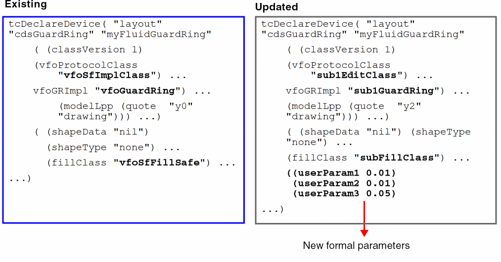 vfoAdvGuardRing, with the name of your new implementation class. - Add the new formal parameters in the updated FGR device declaration construct.