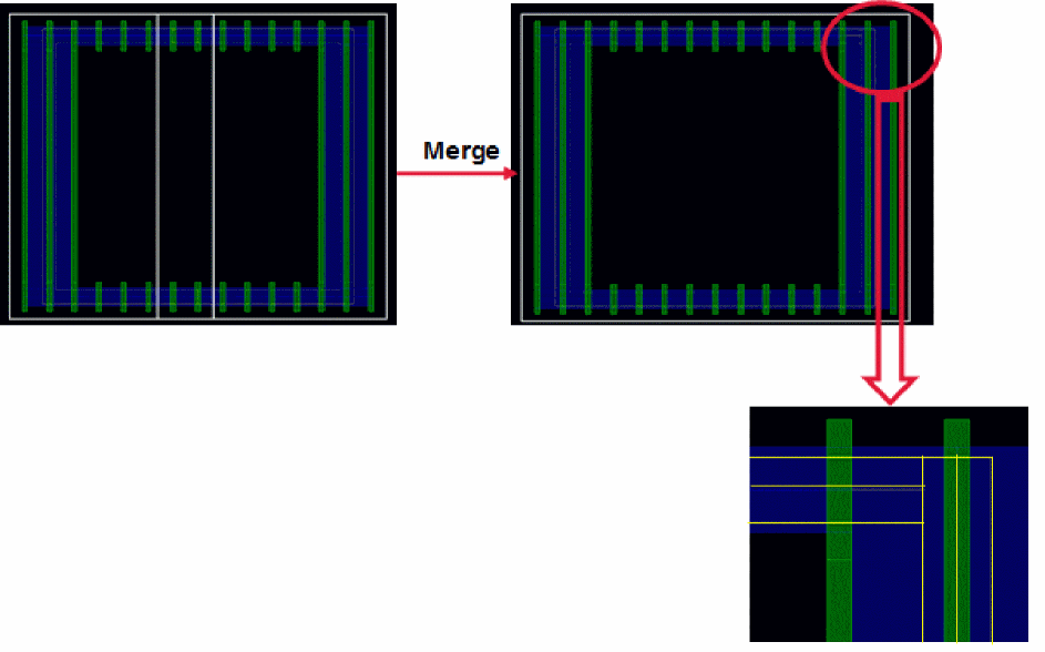 During the Merge operation, minimum segment length and inner corner spacing can cause DRC errors.