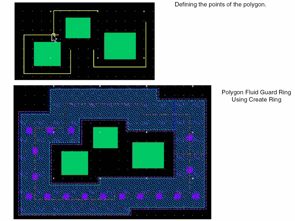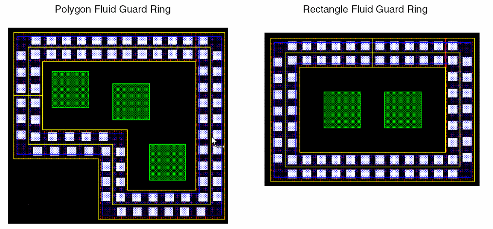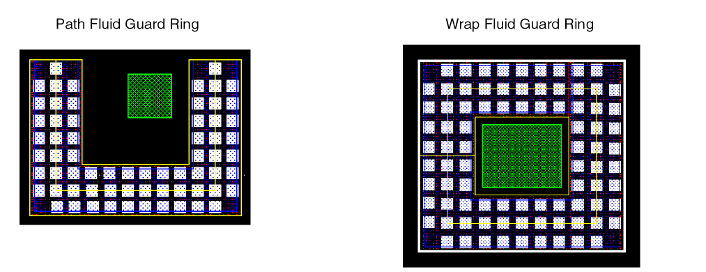After you have installed a fluid guard ring (FGR) as a device class in the technology file, Virtuoso Layout Suite enables you to create and edit the FGRs. For more information about FGR installation, see Chapter 2, “Installing Fluid Guard Rings.”