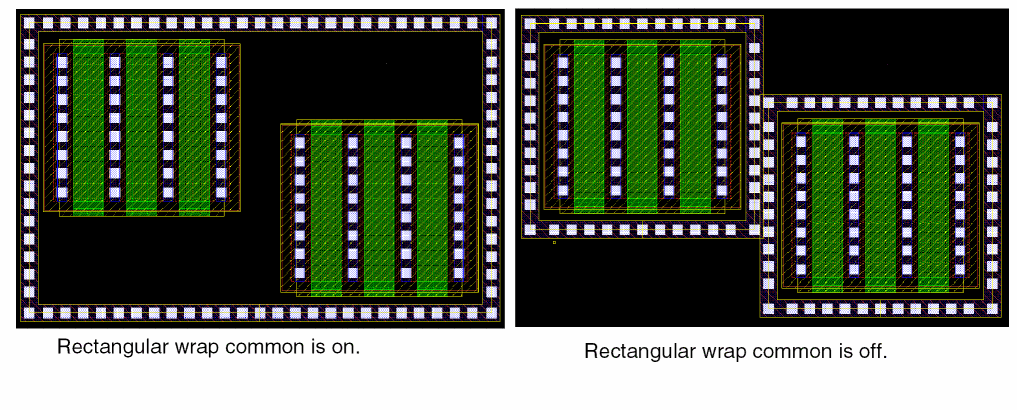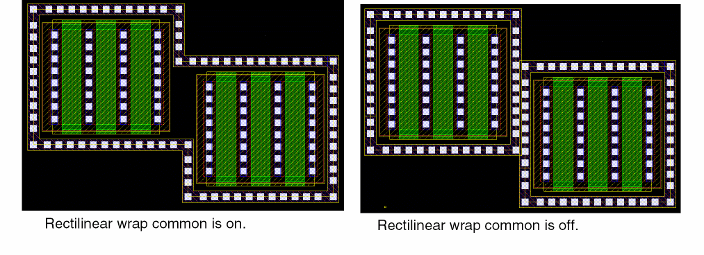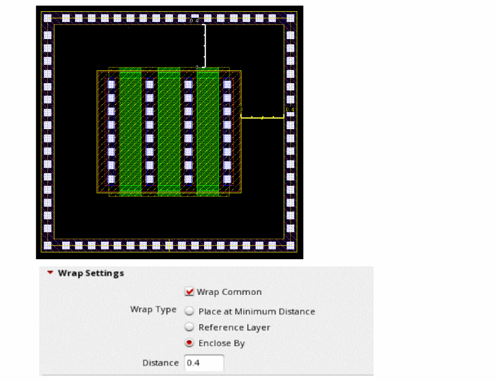 By default, when an FGR is created in the Wrap mode with the Place at Minimum Distance selected, the spacing between the guard ring and the object is computed based on the