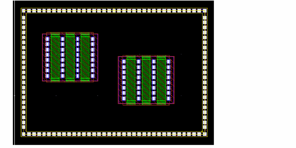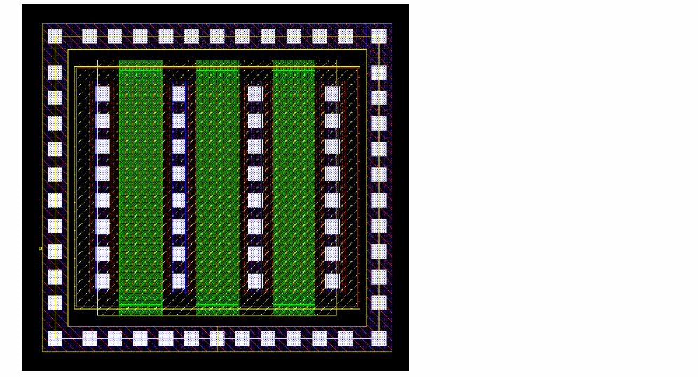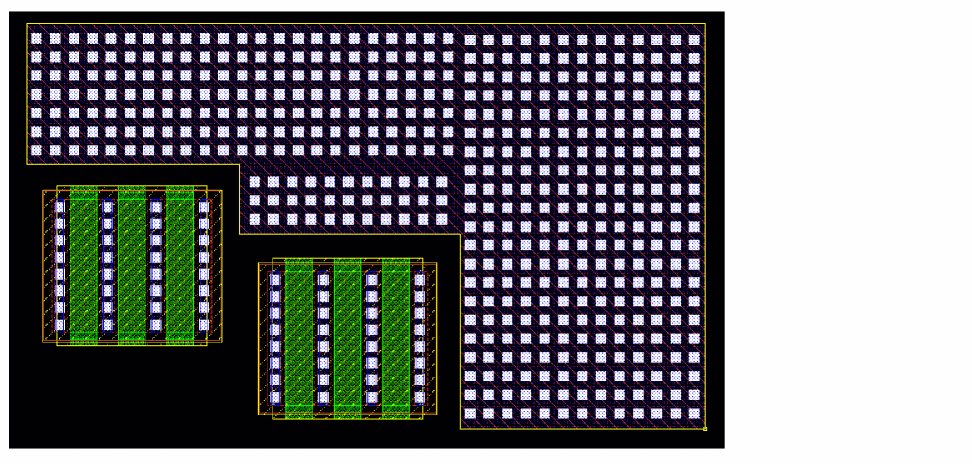 If you have installed the FGR device with the Cover Interior check box selected for the Implant/Well layer (Layers section), the rectangular FGR enclosure is filled with the implant or well layer, as shown below.