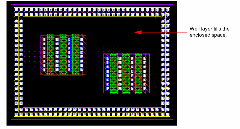 If you have selected the Cover Interiors option in the Create Fluid Guard Ring form for the Implant/Well layer (Layers section), the