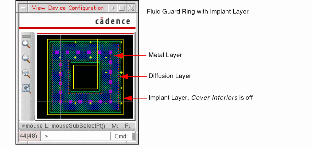 install_dir>/tools/dfII/etc/vfoIf you want to load the FGR implementation files from a previous release or from a different location, specify the path by using the fluidGuardRingInstallPathenvironment variable. -