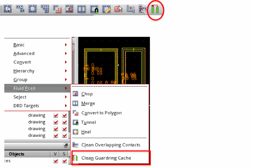 GUI options: You can clean the FGR cache of an open layout cellview by using either of the two options described below: