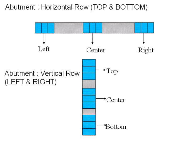 Guides the placement engine to abut the PADs in the designated row. The selection of abutment will depend upon the row side.