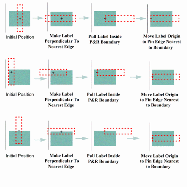 Makes labels and text displays perpendicular to the nearest PR boundary edge. The nearest PR boundary edge is determined based on the minimum distance of the label’s parent pin center from the PR boundary. |