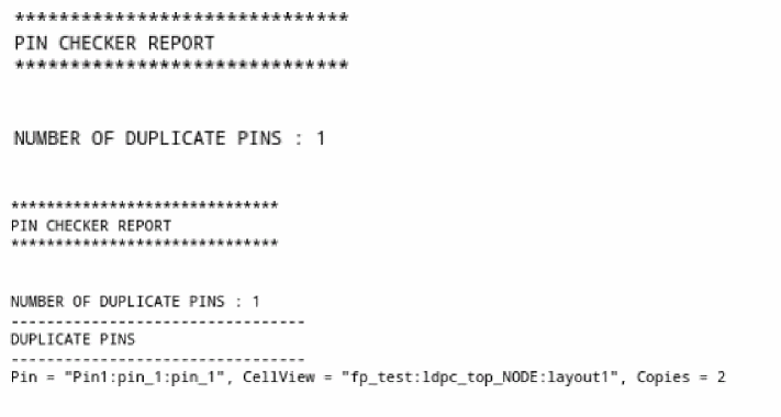 The figure below shows information about duplicate pins in the summary and detailed reports.