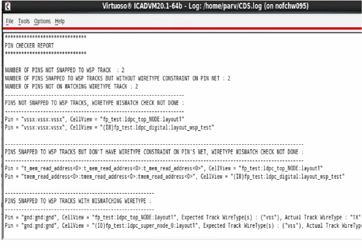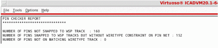 Identifies the pins that are placed on WSP tracks with mismatched wire types, the pins that are not snapped to the WSP tracks, and the pins that are placed on WSP tracks but do not have any wire type constraint.