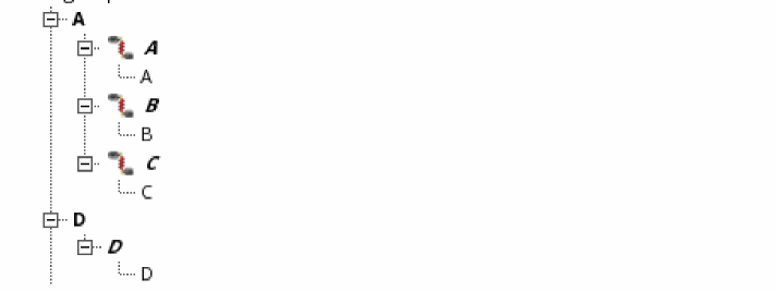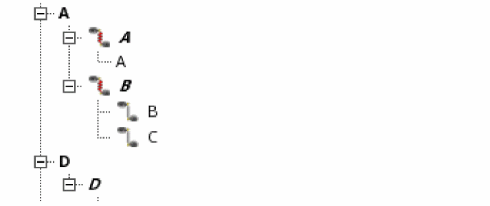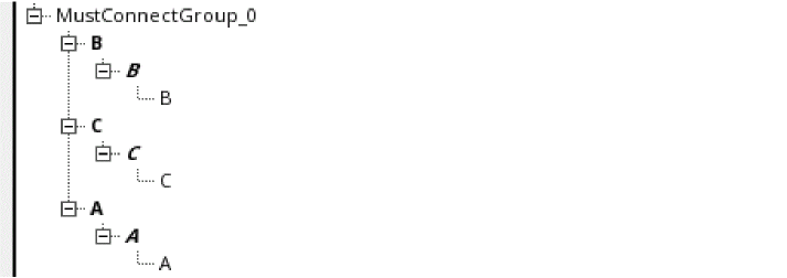 When you expand the first level, the pins in each terminal are displayed in bold, italic typeface; for example, A, B, C, D, E, F, Y, Z, gnd!, and vdd!.