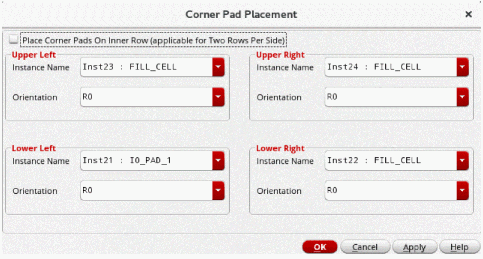 Choose Floorplan – I/O Placer – Corner Pad Placer to invoke the Corner Pad Placement form.