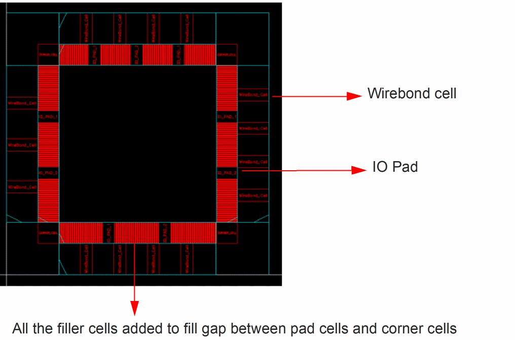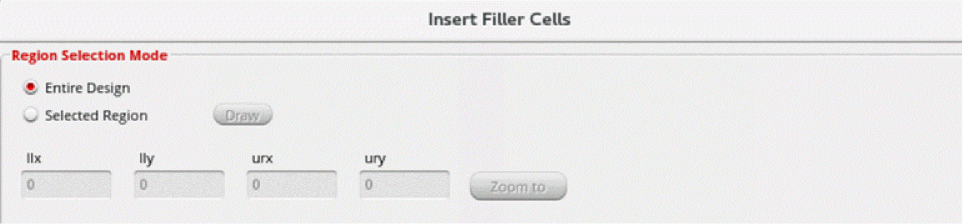 - Define the design area. It could either be an entire design or a selected region of a design. After defining the design area, select the filler cells from the libraries that are to be used.