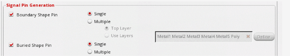 In the Signal Pin Generation section, choose Boundary Shape Pin and Buried Shape Pin options to create boundary and buried whole shapes.