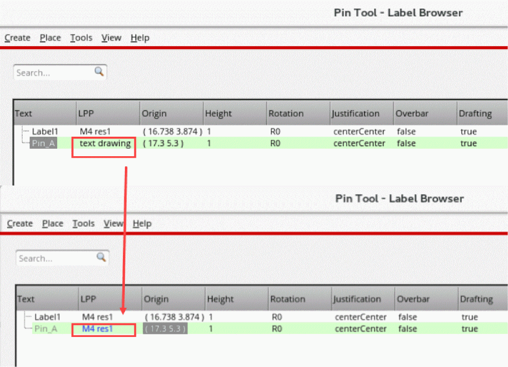When you run certain pin-related commands, such as the Pin Planner and Pin Optimizer, pins in the design are re-layered. You can use the options in the Label Browser of the Pin Tool to control the re-layering of the associated pin labels.