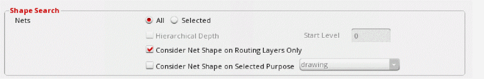 - Select Consider Net Shape on Routing Layers Only to restrict the search for net shapes to the routing layers.