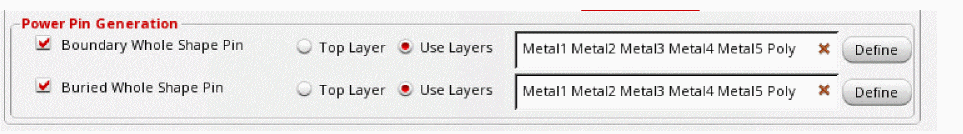 In the Power Pin Generation section, specify the type of whole shape pins to be created - boundary, buried or both.