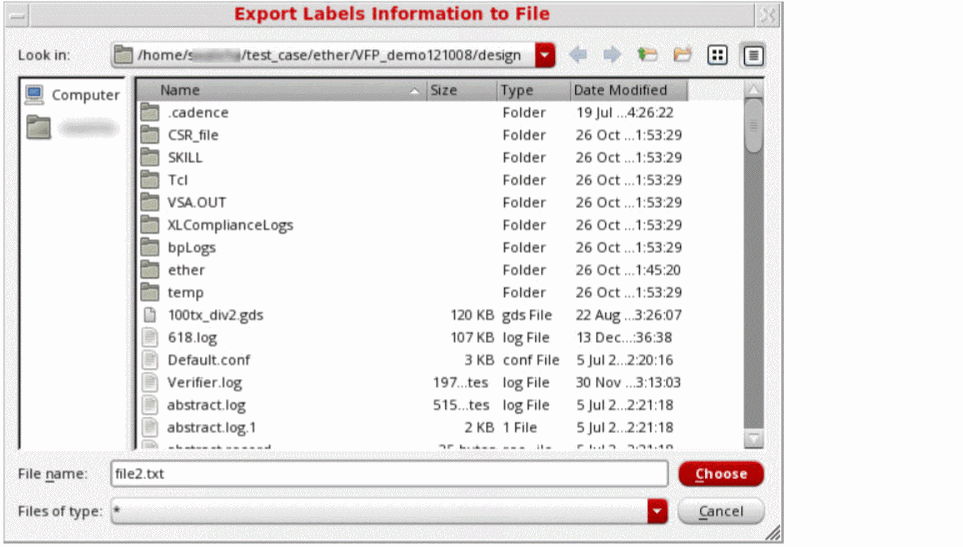 - Type a name for the exported label file in the File name field or select an existing file from the browser.