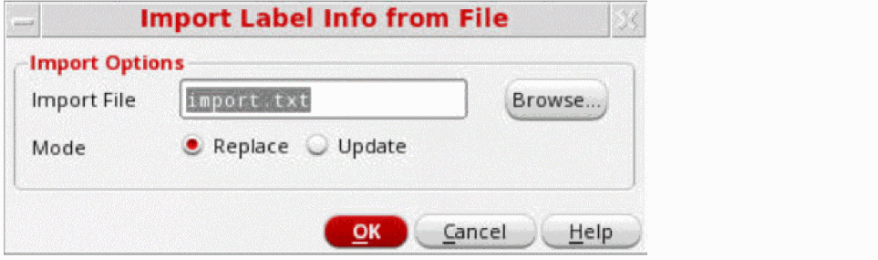 - Specify the required label file name in the Import File field. Alternatively, click Browse to choose the required text file.