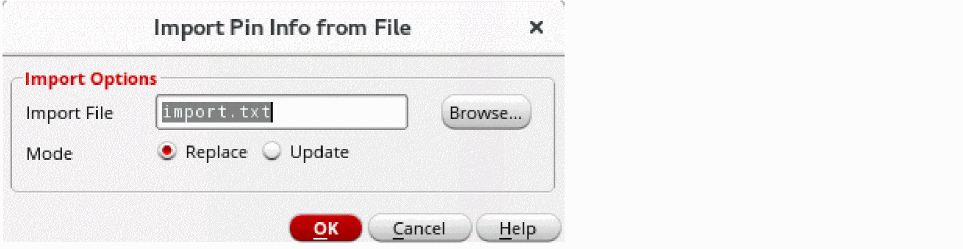 - Specify the required pin file name in the Import File field. Alternatively, click Browse to choose the required text file.