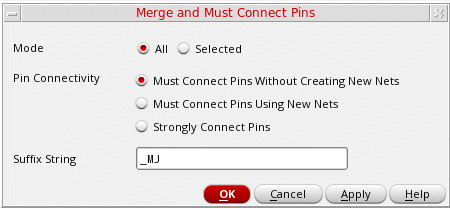 Specify the Suffix String to be added to the new nets, terminals, and pins that have been created on the merged pin islands. By default, the suffix added is