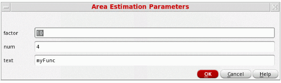 The Area Estimation Parameters form is displayed, where the parameters can be entered dynamically.